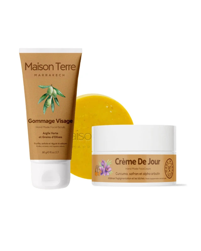 Le problème des crèmes classiques, c'est qu'elles sont souvent appliquées sur une peau "bloquée". Notre pack fonctionne grâce à son système en 2 étapes : le Gommage élimine d'abord la barrière de peaux mortes qui empêche les crèmes de pénétrer. Ensuite, le Sérum peut enfin atteindre la racine du problème. C'est cette combinaison "Préparation + Traitement" qui fait toute la différence.
